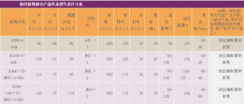 我廠研制的專利產品“鋼絲膠筒”,在油田小套管變形井、高溫井中試驗,耐溫90~120℃,承壓50~60Mpa,取得了明顯的效果,并獲“具有鋼絲繩骨架的油井封隔器膠筒”國家專利。